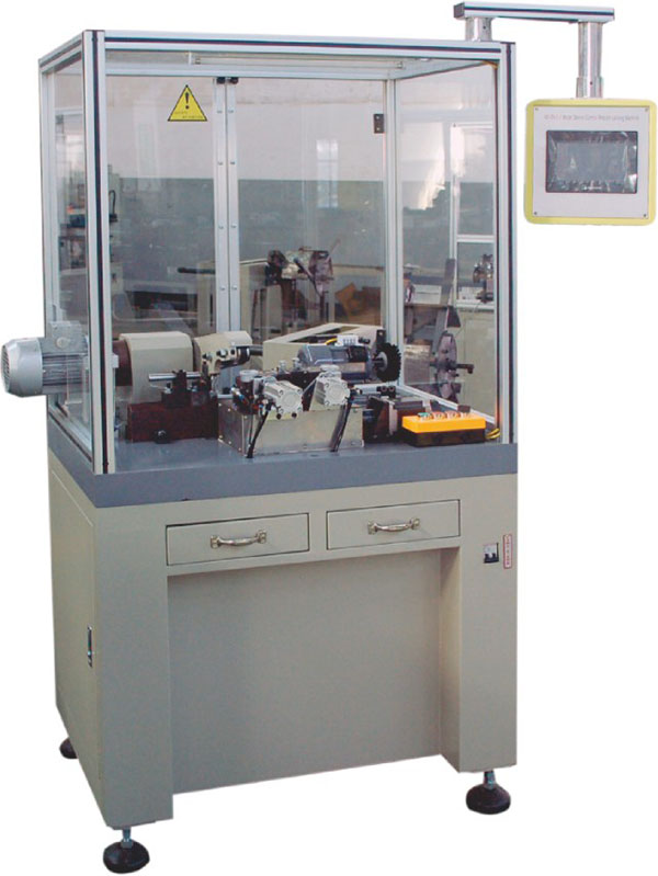 This machine is a precision turning motor commutator diameter of the special equipment. Adopting imported PLC program and touch screen to modify parameters, double turning and roughing car finish once. Servo motor control feed speed, turning uniform and stable, Mitsubishi frequency stepless speed regulation, carbide V-block support rotor shaft, bearing Automatic gear injection device, dial indicator shows the amount of infeed, configuration of high hardness gemstone head, belt friction rotor cylindrical automatic turning, all actions once completed, the upper and lower workpiece, easy to operate.
